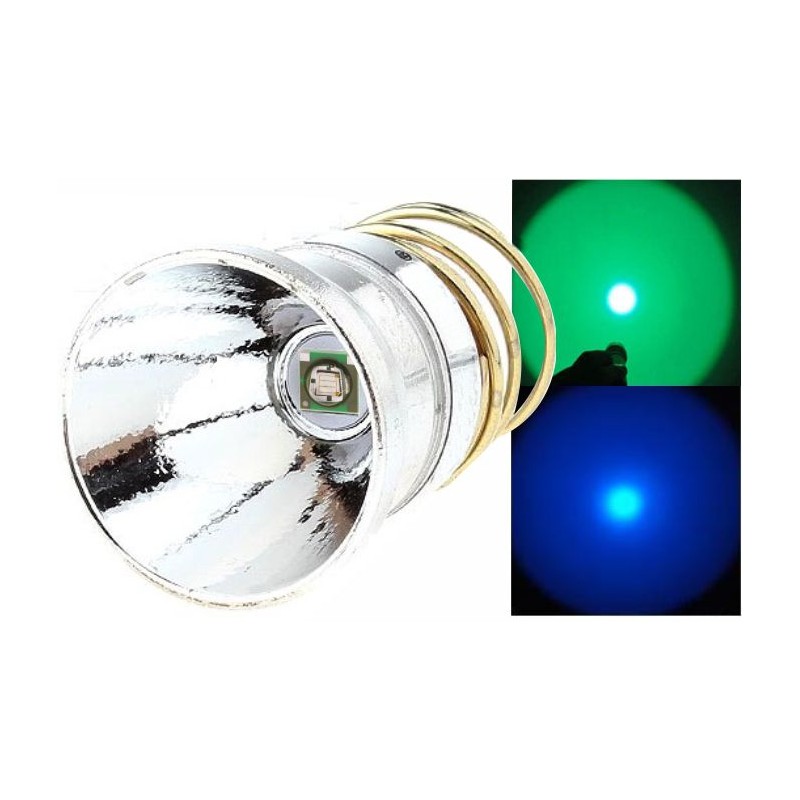 | Cabezal de color CREE Verde XRC o XPE Voltaje: 3.7-4.2v. 1 modo 40~60Lm/60/80Lm |