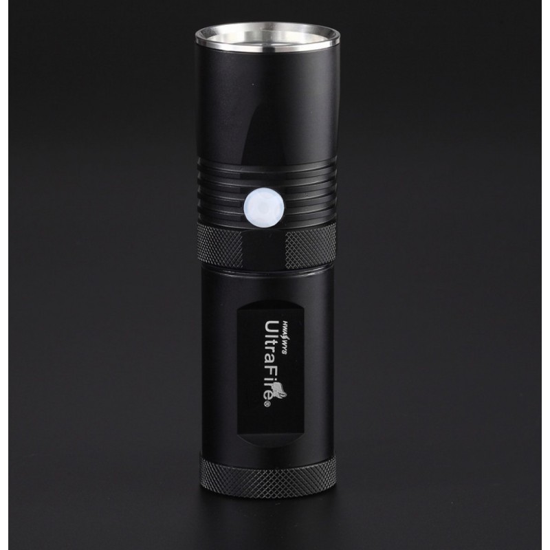 Impresionante linterna con cabezal con LED Cree XML-L2 de 800 Lúmenes, muy luminosa y de gran alcance. Activación y acceso a los modos mediante el botón de goma táctil luminoso (verde) en el cabezal. Gran autonomía de más de 4 horas con batería modelo 26650.