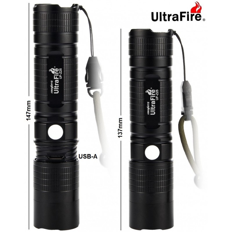UltraFire UF-Z25: Potente linterna con carga por USB y cabezal Led CREE XML-L2 de 900 lúmenes.
