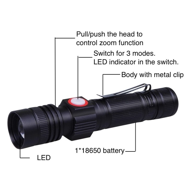 Alimentación: 1 batería 18650 de 2400-2700mAh (no incluida)