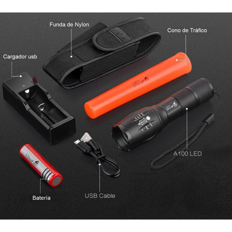 Linterna de Trafico A100, con opción Batería, Cargador, Funda Cono Ámbar y Caja.