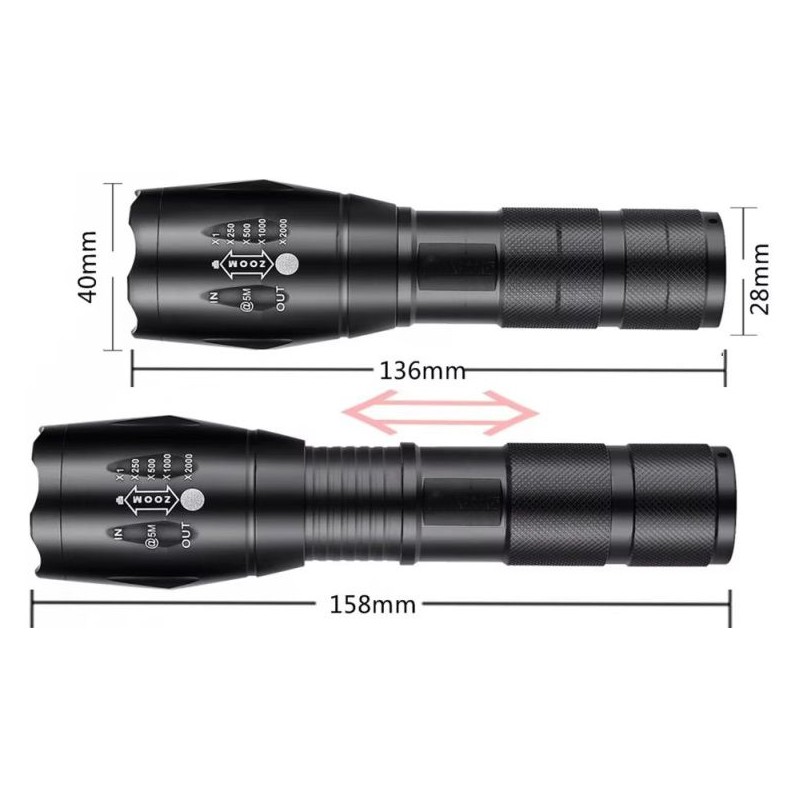 Práctica linterna Zoom con LED de Colores. Juntas tóricas, en todas las uniones para protección contra el agua y la humedad IPX-6.